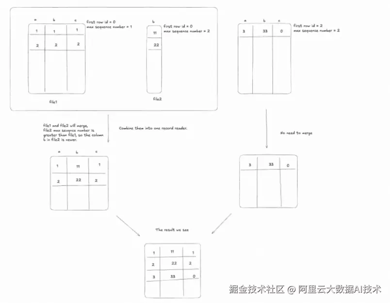 跨文件自动关联:当查询涉及多个列时,系统能根据 Row ID 范围自动将分散在不同文件中的列数据在存储层合并。