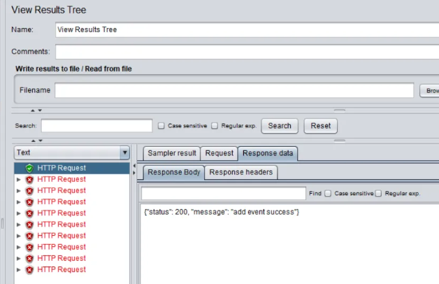 然后运行Jmeter,查看是否只有一条记录可以增加,而其余的9条记录,都应该报错,显示已经存在这个id号码。