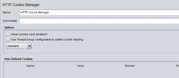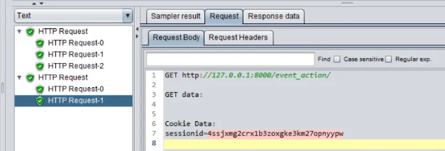 以下是第一个接口的Jmeter的设置方法,由于通过Session必须传递到event_action接口中,因此必须增加Http Cookie Manager的配置,否则无法保存Session值。