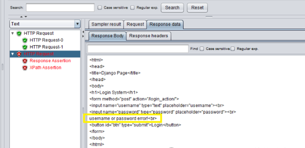 当返回的内容是html的时候,可以设置Xpath Assertion