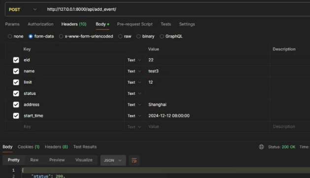 如果eid ,name ,limit , address , start_time 其中有任何一项为空, 返回状态码为: