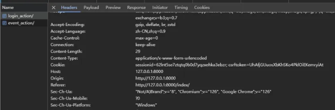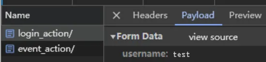 由于接口的跳转, 从login_action 接口跳转到了 event_action接口,我们可以看到,login_action 接口还显示了 302等转移,跳转含义的信息。