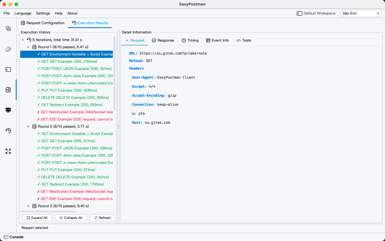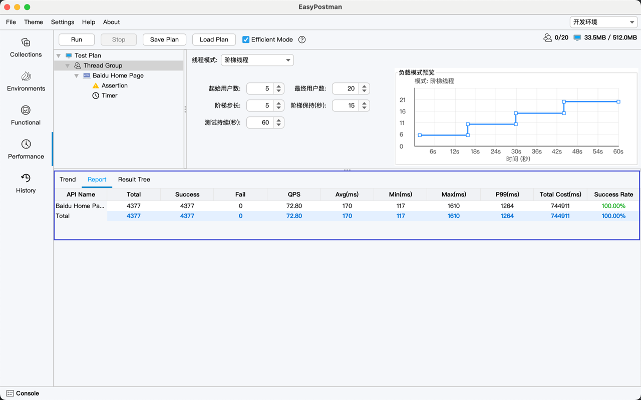 A: EasyPostman 的性能测试功能是简化版的 JMeter,适合日常开发中的快速压测。对于复杂的性能测试场景(如分布式压测),仍建议使用专业的 JMeter。