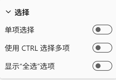 " TodayFlag " 为文本类型字段,直接拖放切片器字段值,视觉对象垂直列表可全部显示,打开单项选择则实现单选筛选数据,打开 "全选" 选项则切片器有全选选项。