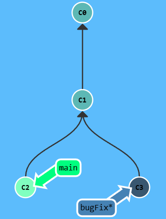 bashgit checkout bugFix;git merge main因为