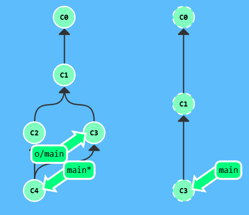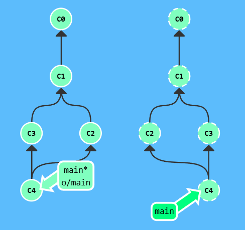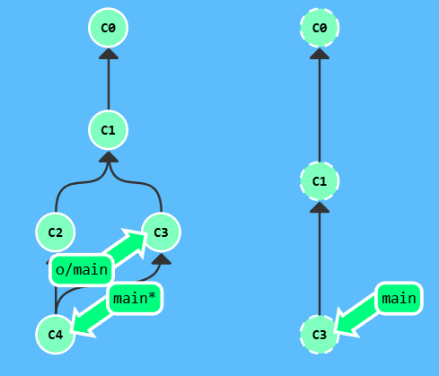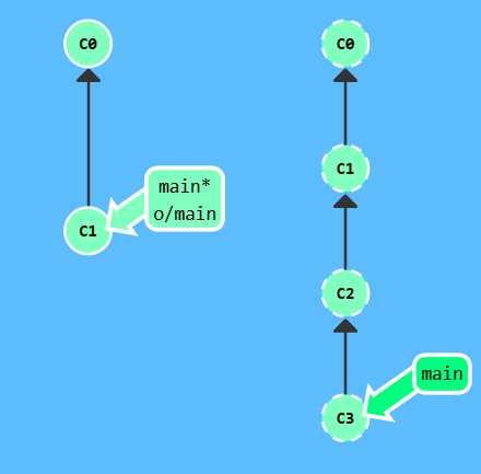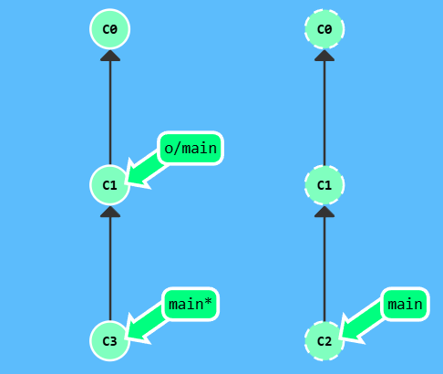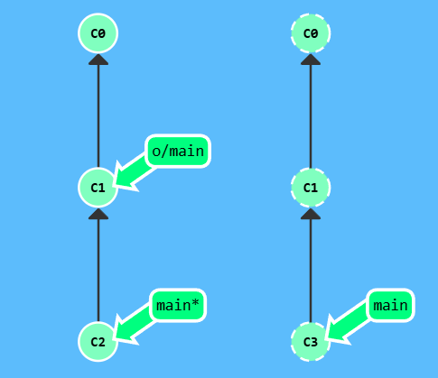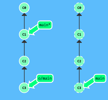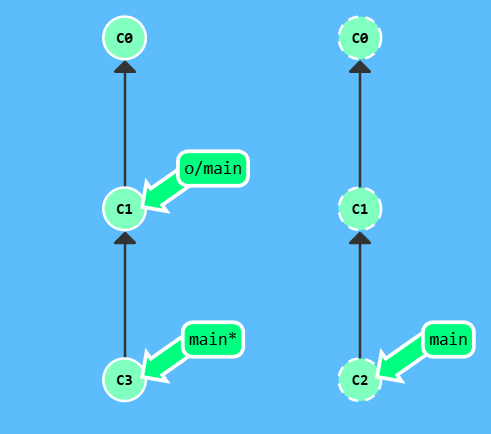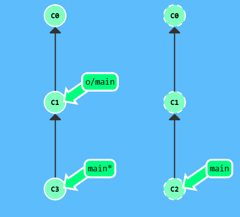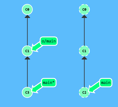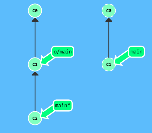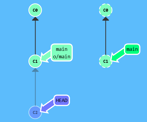 漂亮! Git 把 main 分支移回到 C1;现在我们的本地代码库根本就不知道有 C2 这个提交了。