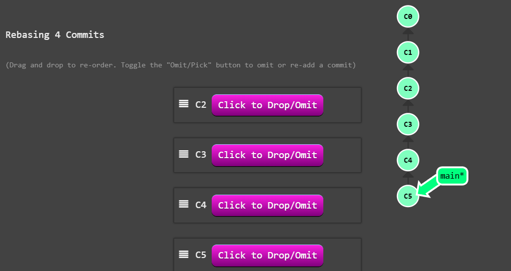 - 调整提交记录的顺序(通过鼠标拖放来完成)