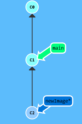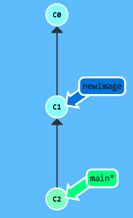 newImage指向的是提交记录C1。现在咱们试着往新分支里提交一些东西。