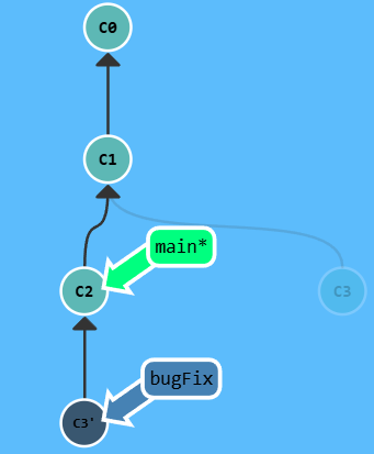 main继承自bugFix,Git 什么都不用做,只是简单地把bugFix移动到main所指向的那个提交记录。现在所有提交记录的颜色都一样了,这表明每一个分支都包含了代码库的所有修改!大功告成!