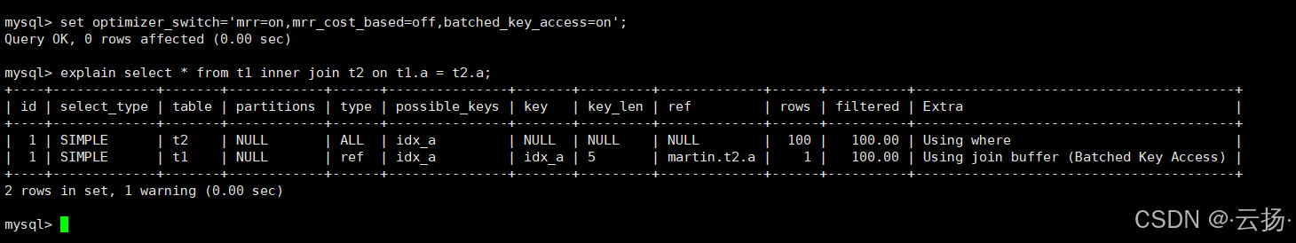 join_buffer; - 批量将关联字段值发送到MRR(Multi-Range Read)接口;
