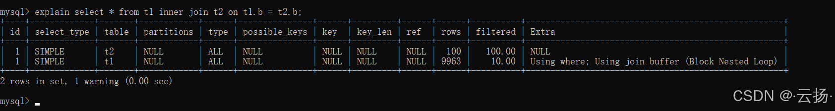 explain select * from t1 inner join t2 on t1.b = t2.b;