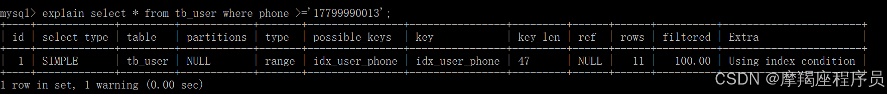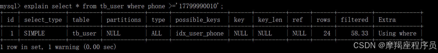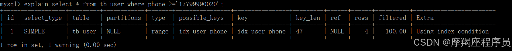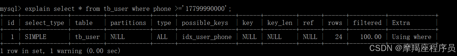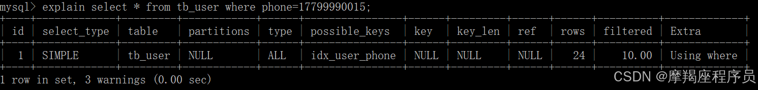 explain select * from tb_user where phone='17799990015'; explain select * from tb_user where phone=17799990015;