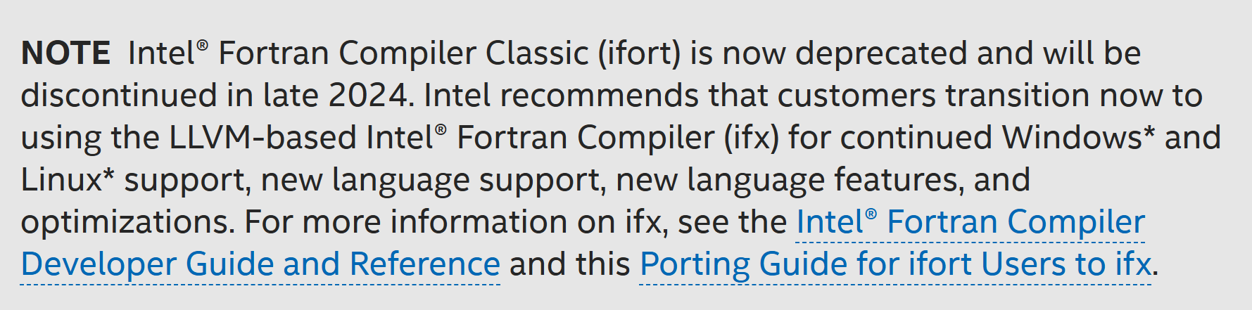 但是ifort功能在最新版本intel中被移除,这意味着ifx必须使用。
