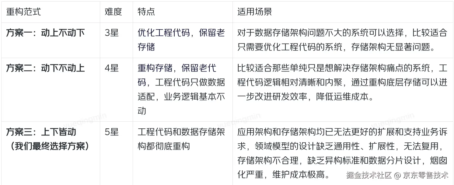 补充:本次评价重构是上层代码和下层存储一起重构的,实践下来难度非常大,周期也很长,过程非常的曲折。所以,非必要的情况下建议还是一层一层地渐进式重构更稳妥。