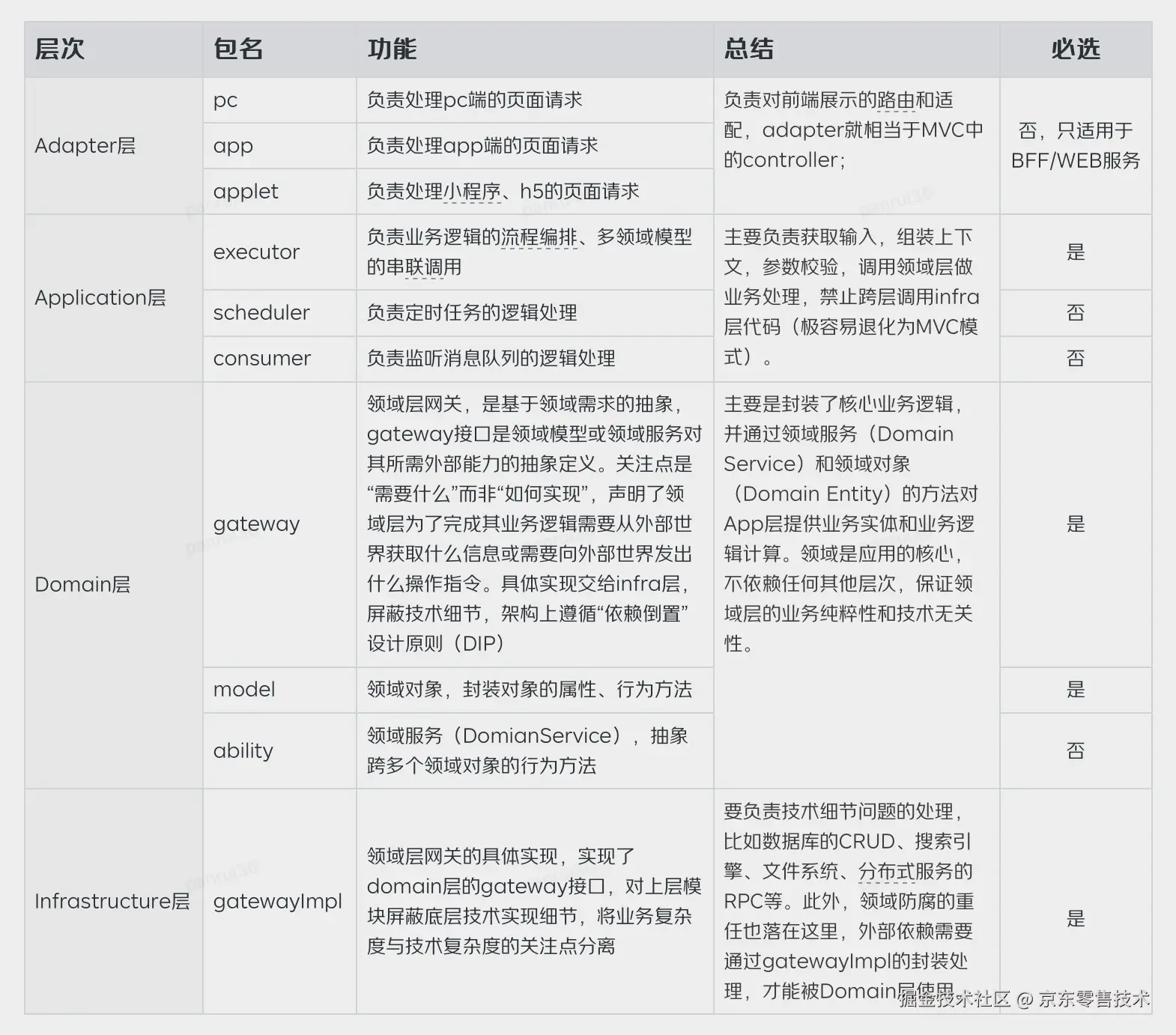 2)应用层(Application Layer):主要负责获取输入,组装上下文,参数校验,调用领域层做业务处理,如果需要的话,发送消息通知等。层次是开放的,应用层也可以绕过领域层,直接访问基础实施层;