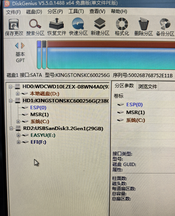 重新使用DiskGenius 工具对硬盘进行分区,分区表类型 选择GPT(GUID)