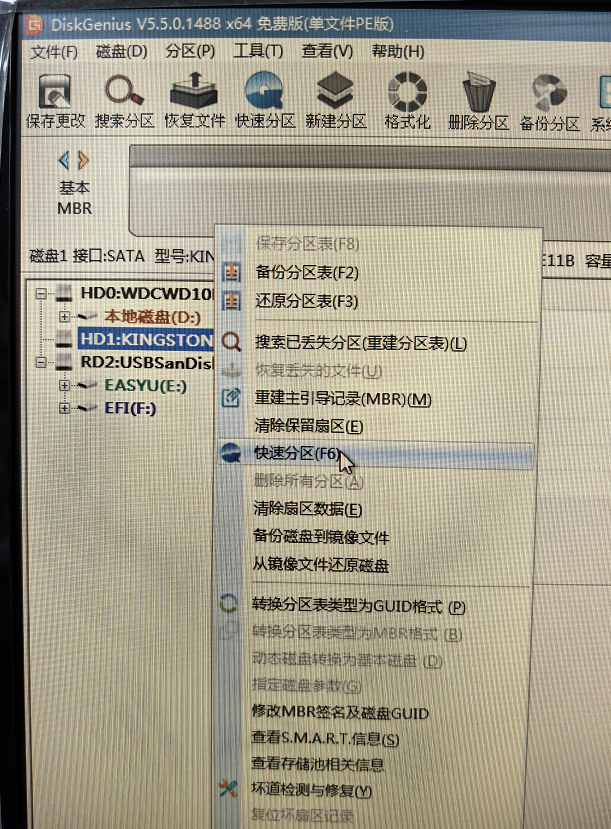 首先把之前建立的分区先删除,右键 分区,点击删除当前分区