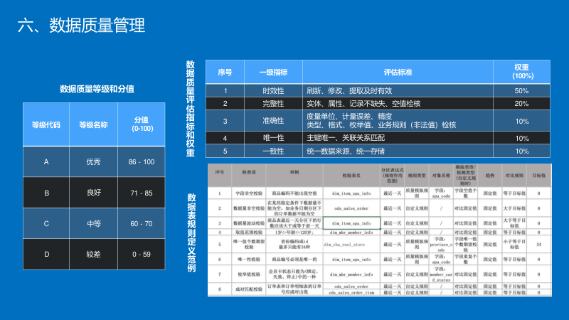 - 数据质量管理:建立数据质量管理体系,通过数据质量检核、分析、改进等环节,提升数据质量,确保数据的准确性、完整性与一致性。