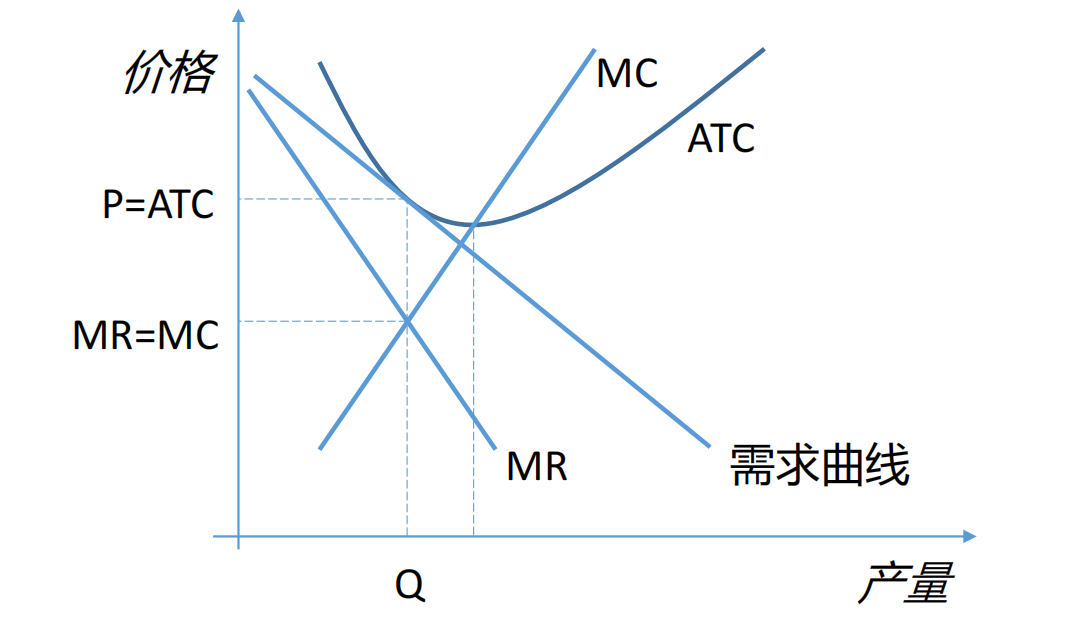 - 利润判断:在这个最优产量上,企业设定的价格(由需求曲线决定)高于其平均总成本(ATC)。