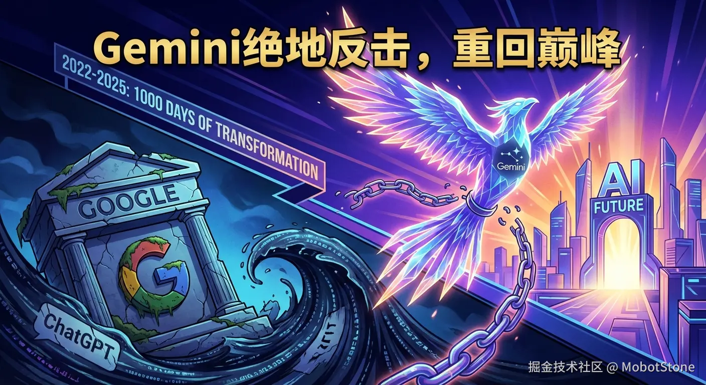 2022年底,当ChatGPT以摧枯拉朽之势席卷全球时,昔日的AI霸主Google正陷入前所未有的平庸陷阱。市场甚至传出"Google已死"的激进论调。然而,在随后的1000天里,Google通过一场近乎"断臂求生"的内部变革,不仅稳住了阵脚,更凭借Gemini系列的强势迭代,重新夺回了定义未来的主动权。