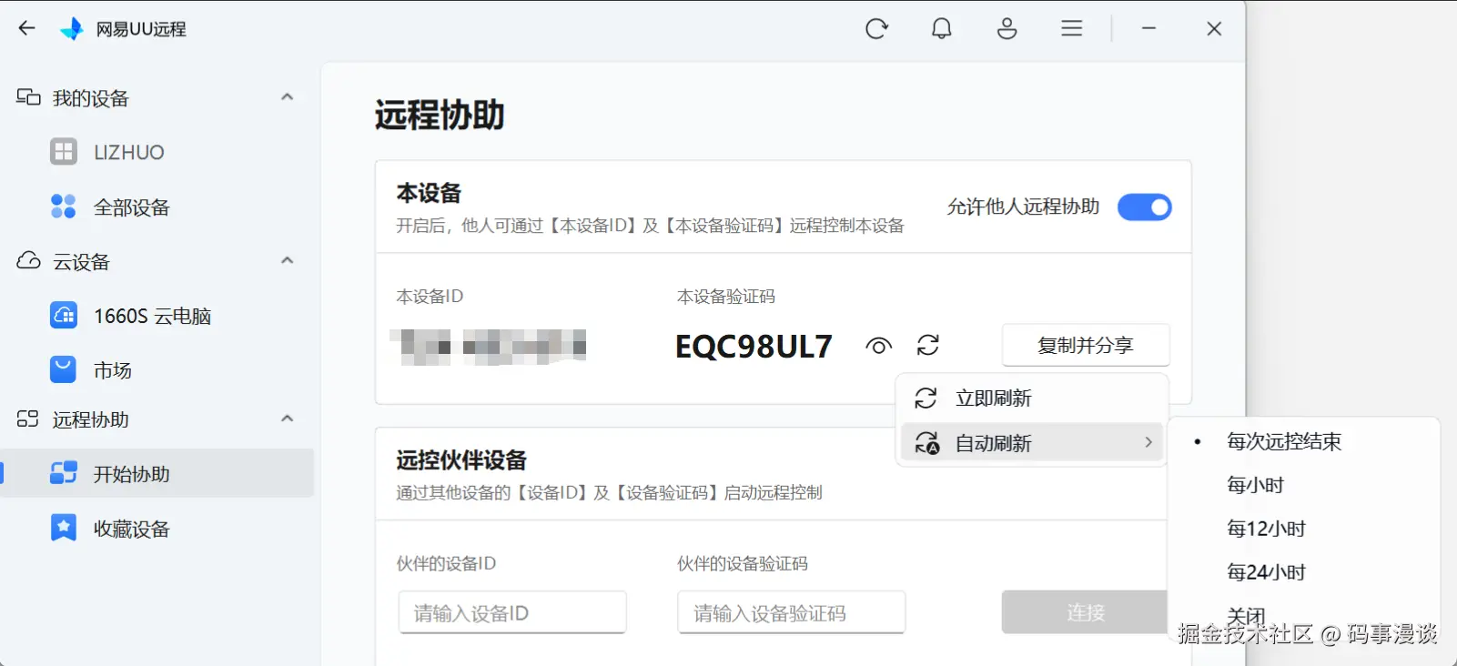 4、美中不足的是当前设备的验证码无法自定义,远程时一个一个字母输入确实不太便捷,好在可以灵活选择验证码的有效期,避免了每次都输入的问题!