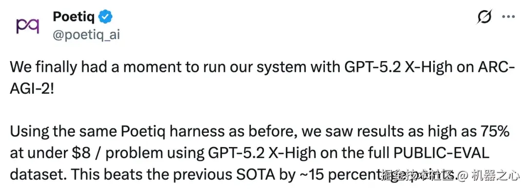 Poetiq 还特别强调了,其没有对 GPT-5.2 进行任何再训练或模型特定的优化。