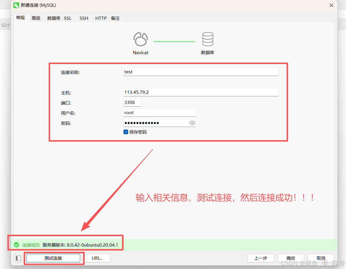 按照下面的步骤一步一步来尝试连接(外部服务器(外地)连接云服务器(本地)),最后连接成功后我们点击确定就返回到主页面了: