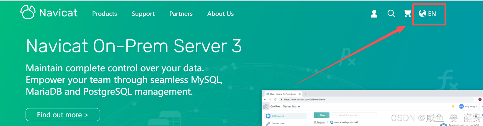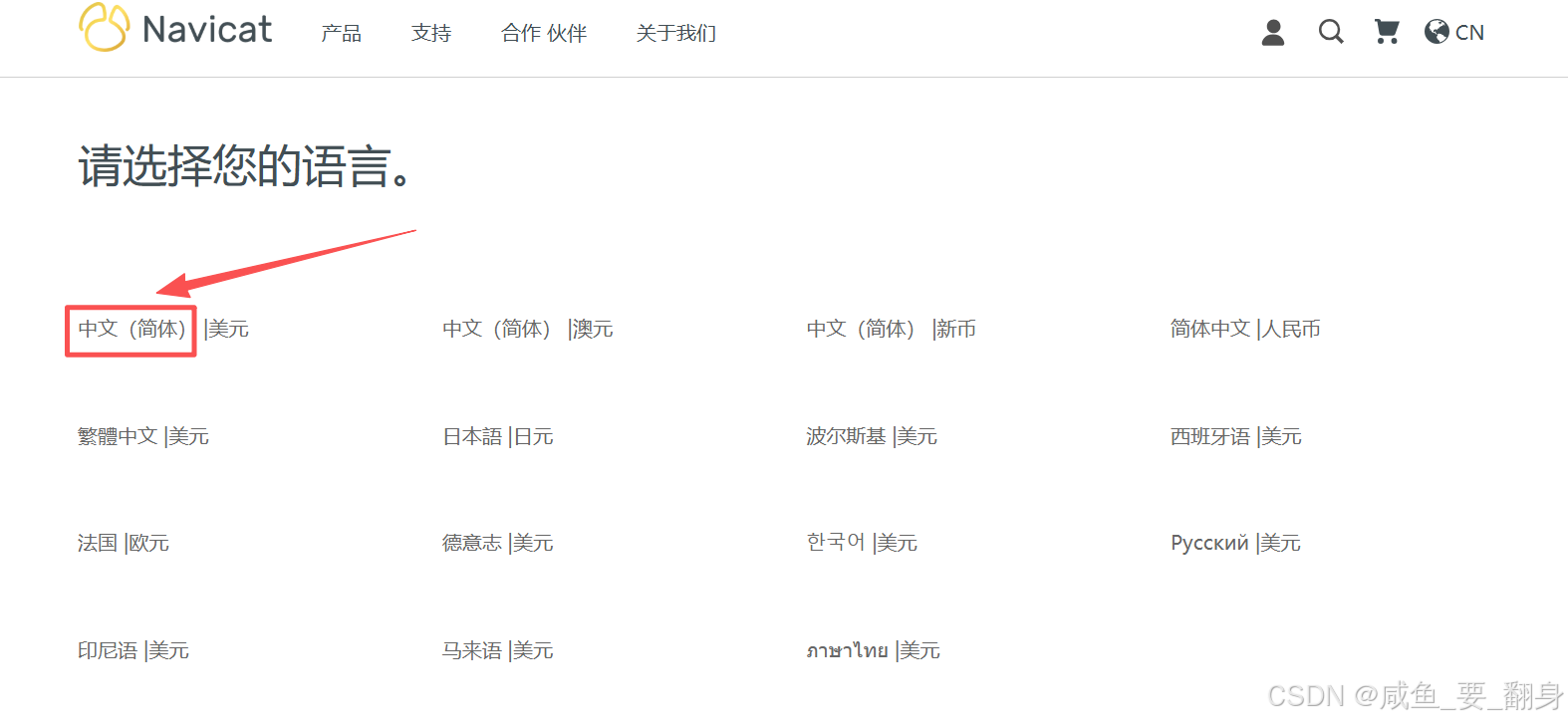 然后我们在右上角选择Navicat 官方网站的语言,如下: