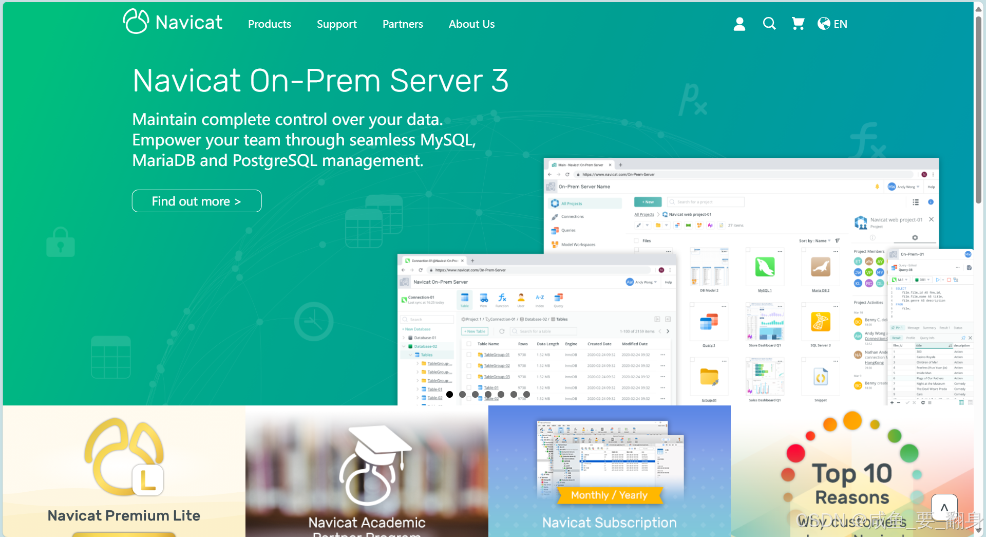 Navicat 是一款为数据库专业人士和开发者设计的"瑞士军刀"式全能工具 。它将数据库管理的复杂性封装在直观的图形界面之后,极大地提升了工作效率,是许多团队和个人进行数据库操作的得力助手。是否选择它,可以权衡其带来的效率提升与所需的商业授权成本。对于初学者,也可以先用其免费试用版或开源替代品来体验图形化数据库管理的便利。下面将介绍如何下载和安装Navicat 这款软件。Navicat 的官方网站:Navicat GUI | Comprehensive Database Management Tool