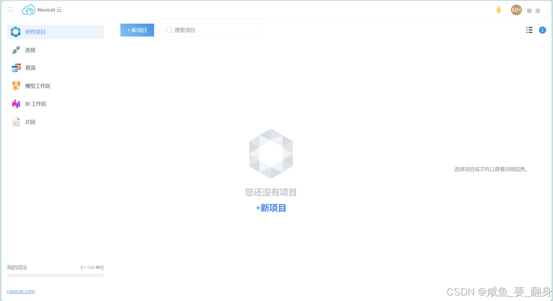 登录上后我们返回Navicat的登录页面,使用邮箱和密码来登录,于是就顺利进入Navicat的正常页面了:
