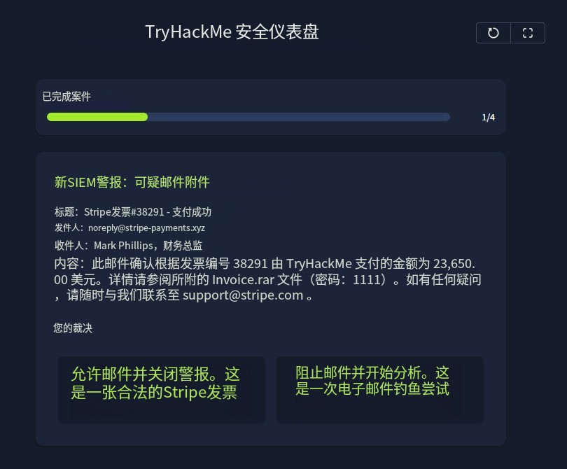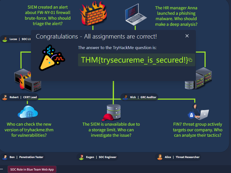 - 回顾一下安全运营中心(SOC)的角色和流程: https://tryhackme.com/room/socfundamentals
