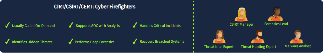 如果安全运营中心 (SOC) 的专业知识不足以应对危机,或者事件失控,您需要紧急呼叫"救火队"------网络安全事件响应小组 (CIRT),也称为 CSIRT 或 CERT。CIRT 成员应具备广泛的网络威胁知识,并能在不依赖EDR或SIEM等工具的情况下处理安全漏洞。CIRT 的工作压力大、责任重大,但也极具成就感。以下是一些 CIRT 的例子: