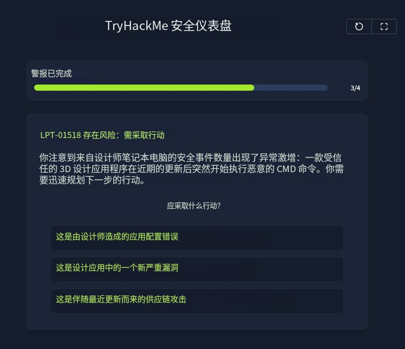 由于您无法始终控制笔记本电脑、服务器和 Web 应用程序上的所有软件,因此很难防范供应链攻击。就连 TryHackMe 也曾因 Lottie Player(一个用于房间动画的库)的供应链攻击而遭受损失。作为安全运营中心(SOC)分析师,您必须做好应对此类情况的准备,并知道如何应对!