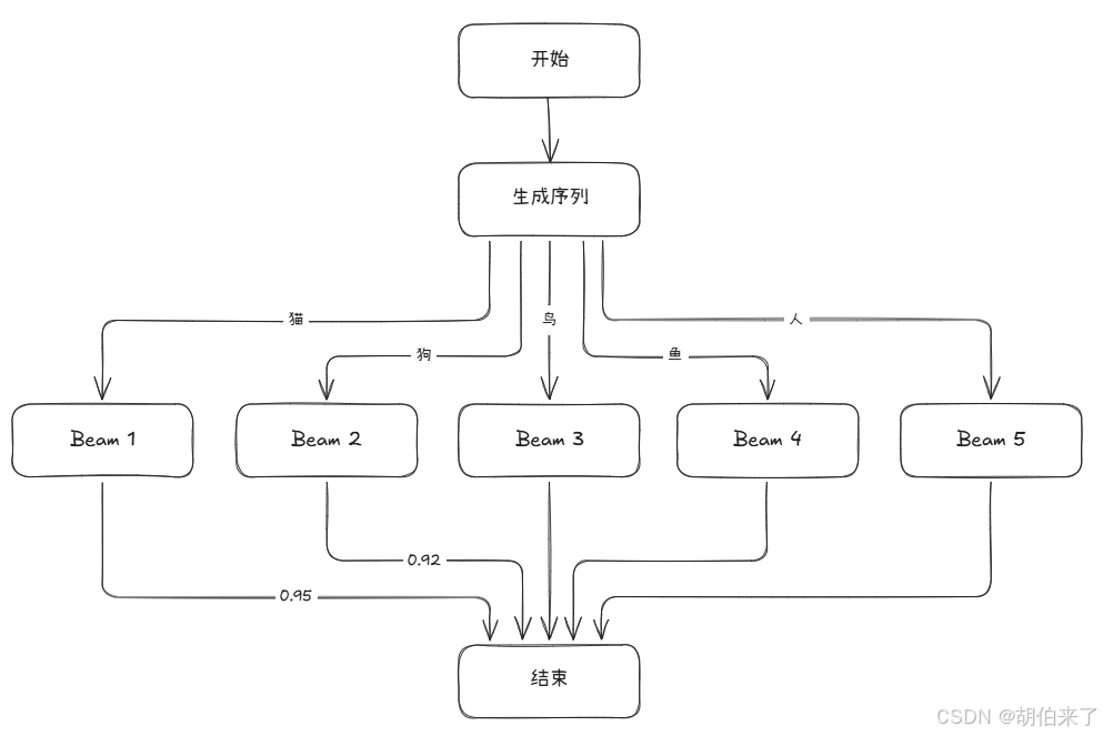 - 在每一步中,维持多个候选序列(通常是 5 5 5 - 10 10 10 个);