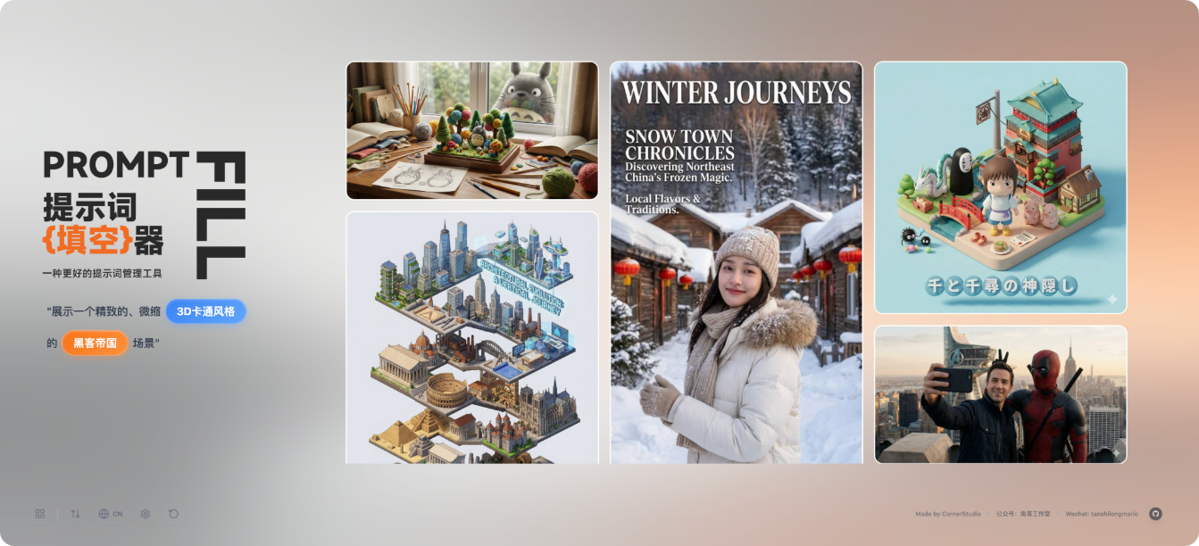 近日,AI创作领域迎来全新突破------全球首款采用填空式交互架构的AI绘画提示词生成工具PromptFill正式上线,彻底重构AI绘画提示词的创作范式,为行业带来从"自由摸索"到"标准化生成"的革命性转变。