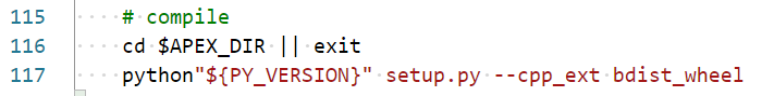 且import torch正常说明torch应该是正常安装的。 检查apex/script/build.sh脚本可以看到使用的应用完patch后NV apex仓库的setup.py脚本进行编译