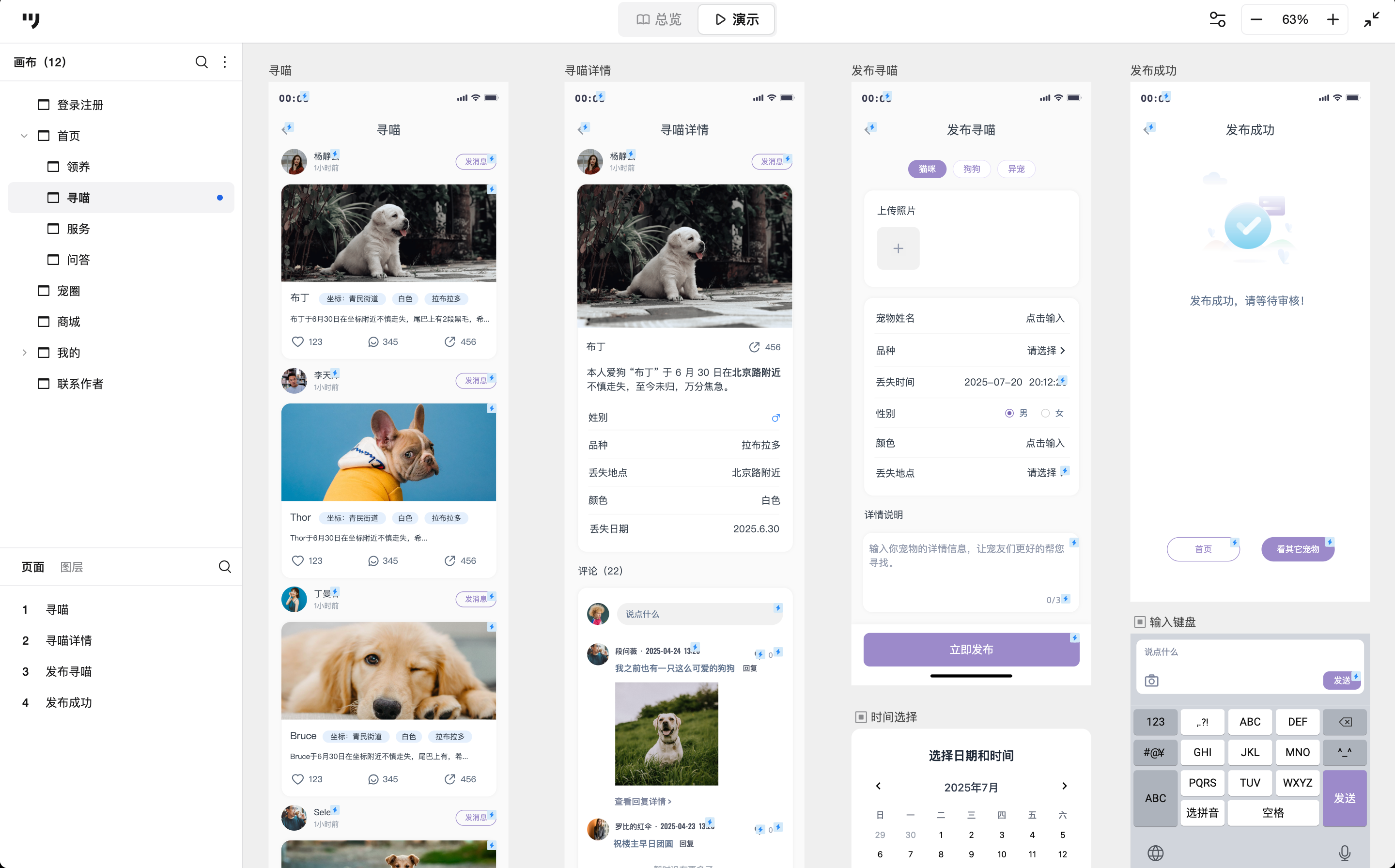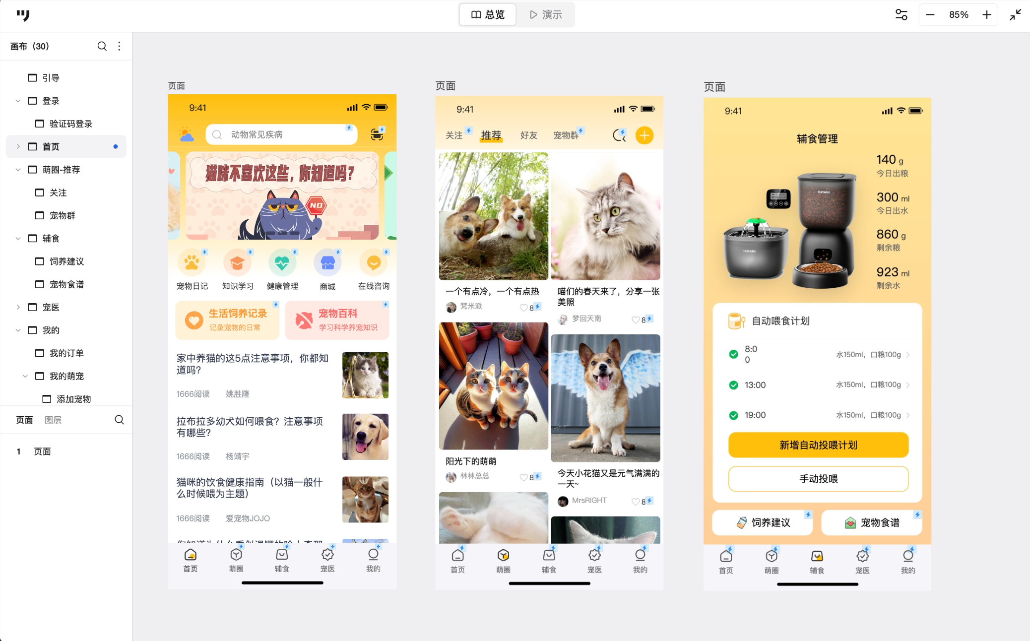 在实际做宠物类APP/小程序原型时,最容易遇到的问题不是功能不够,而是功能一多,页面和流程就开始变得臃肿。如果融入AI、硬件、社区等复杂功能,能不能让用户用得起来?