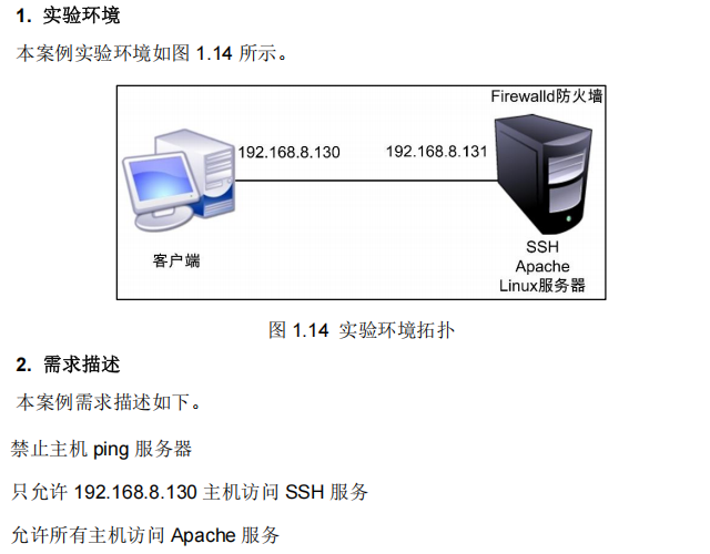 icmp-blocks: echo-request(ping 已阻断);rich rules: rule family="ipv4" source address="192.168.8.130" port port="22" protocol="tcp" accept(SSH 仅允许指定IP);services: http(Apache 已放行)。