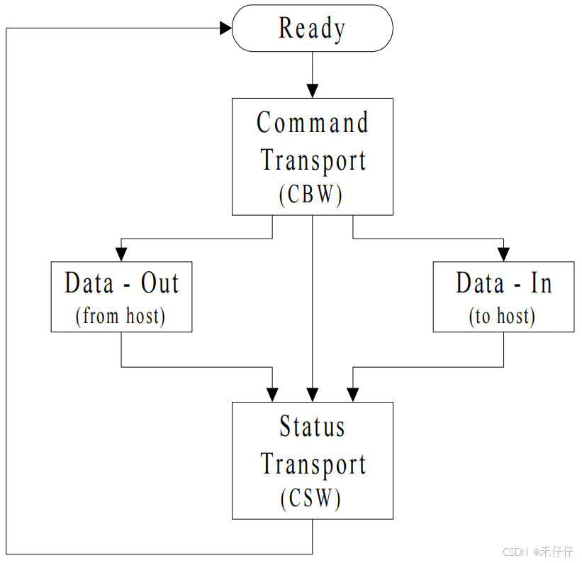 其实这里要说的是主从机交互CBW和CSW的处理编程模型;实际在很多开源协议中比如stm32的usbd、tinyusb等都有具体实现,协议中也有具体描述。