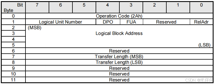 WRITE(10)命令要求UFI设备将主机传输的数据写入介质。
