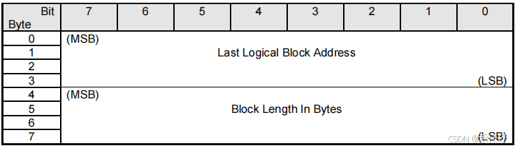 - Block Length In Bytes:块长度(字节)字段则定义了给定容量描述符下每个逻辑块的字节长度。