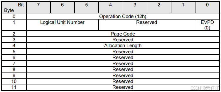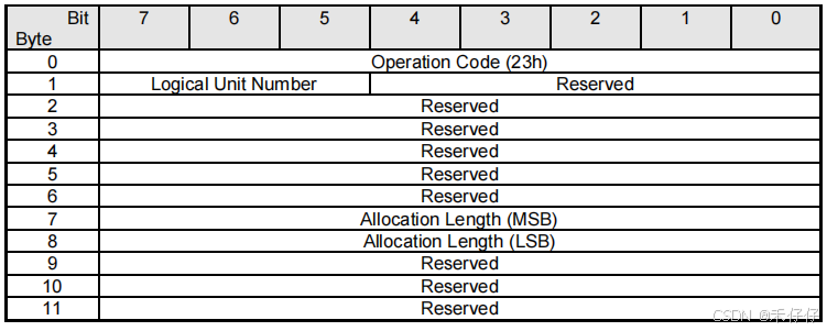 - Allocation Length:指定被返回的查询数据的最大字节数, 0 值将不会产生错误。