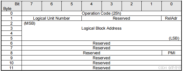 READ_CAPACITY命令用于主机从设备获取当前设备媒价的存储容量。