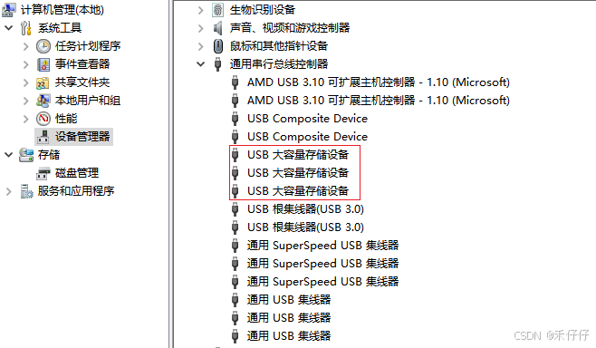 我当前电脑外接了USB读卡器,U盘和模拟的USB接口U盘,都会被系统识别为USB大容量存储设备。