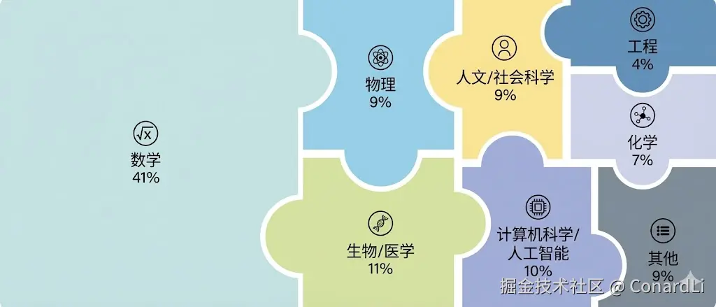 如果说"通用学科知识"是考大模型的**"记忆力"(看它背了多少书),那么"推理能力"考的就是它的"脑力"**(看它聪不聪明,逻辑转不转得过来)。