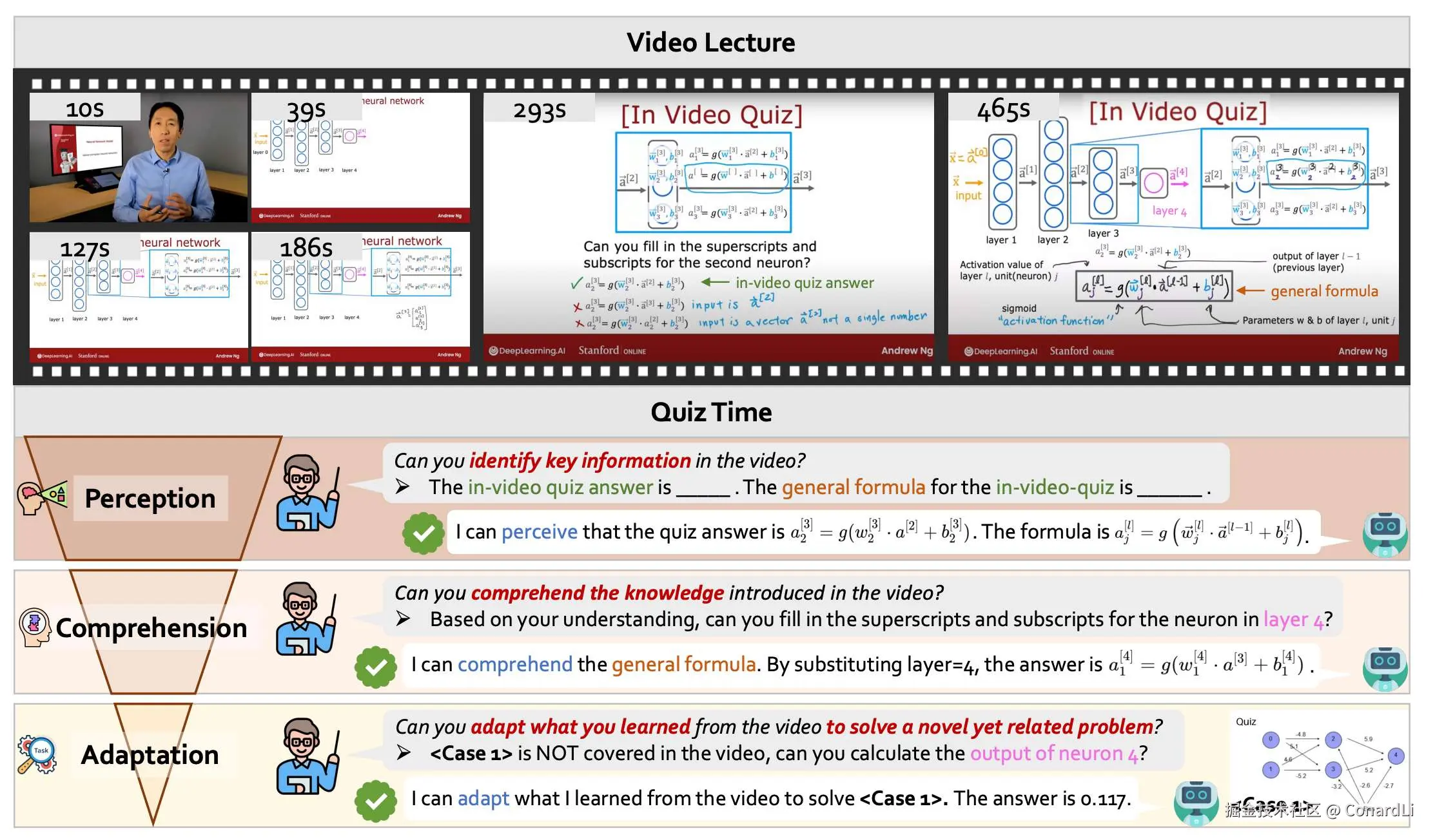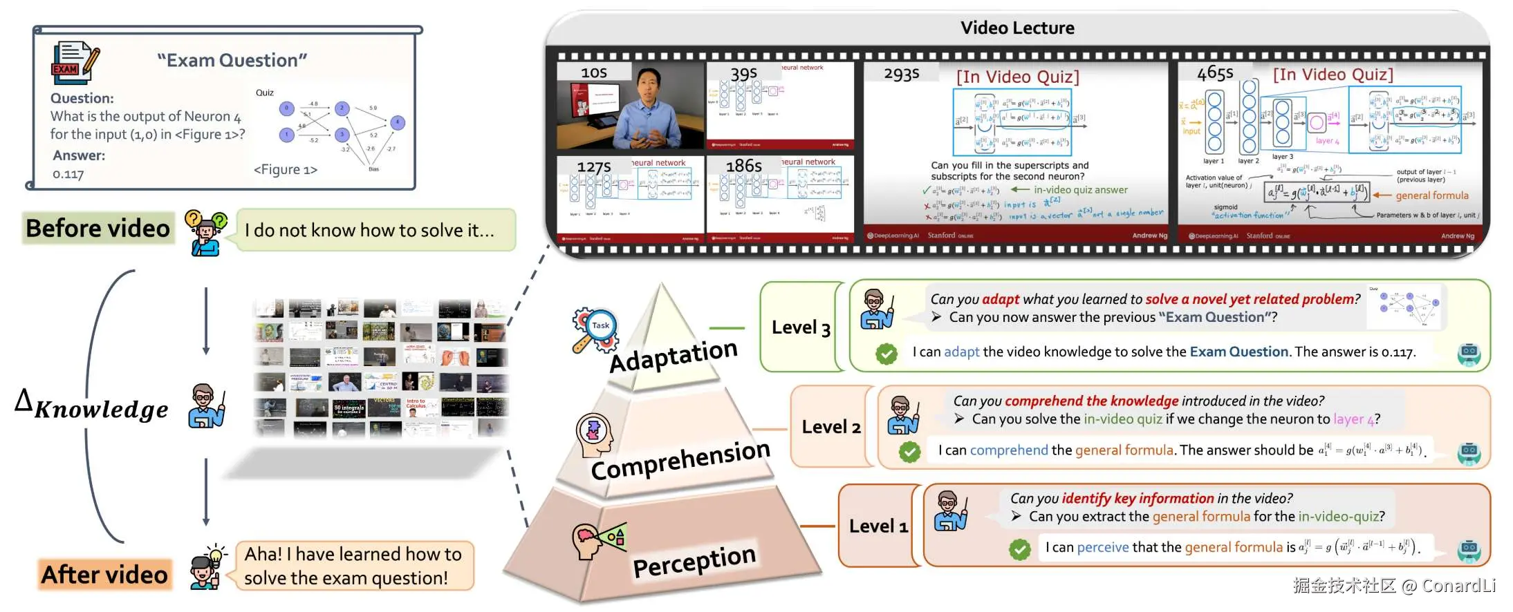 Video-MMMU 全称 Video-Massive Multi-discipline Multimodal Understanding,它是 MMMU 的 "动态版"。把考试从"看图片"升级成了"看视频"。