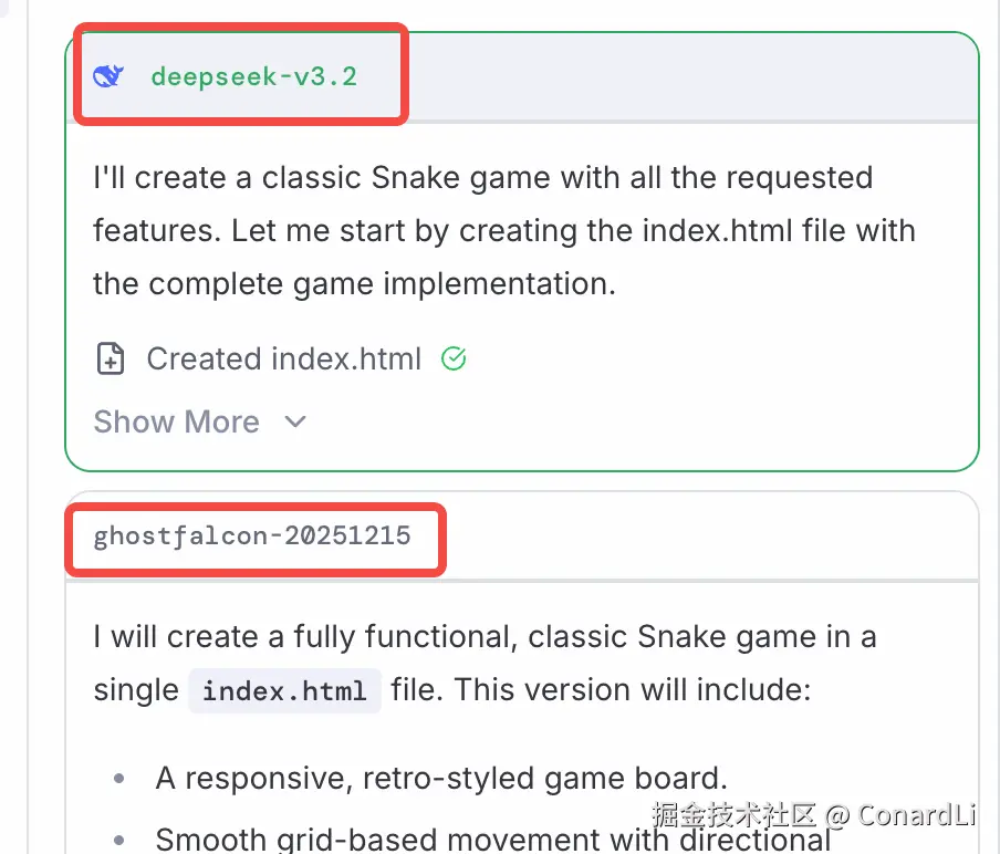 然后它就会揭晓答案:A 模型是 deepseek-v3.2,B 模型是 `ghostfalcon-20251215:
