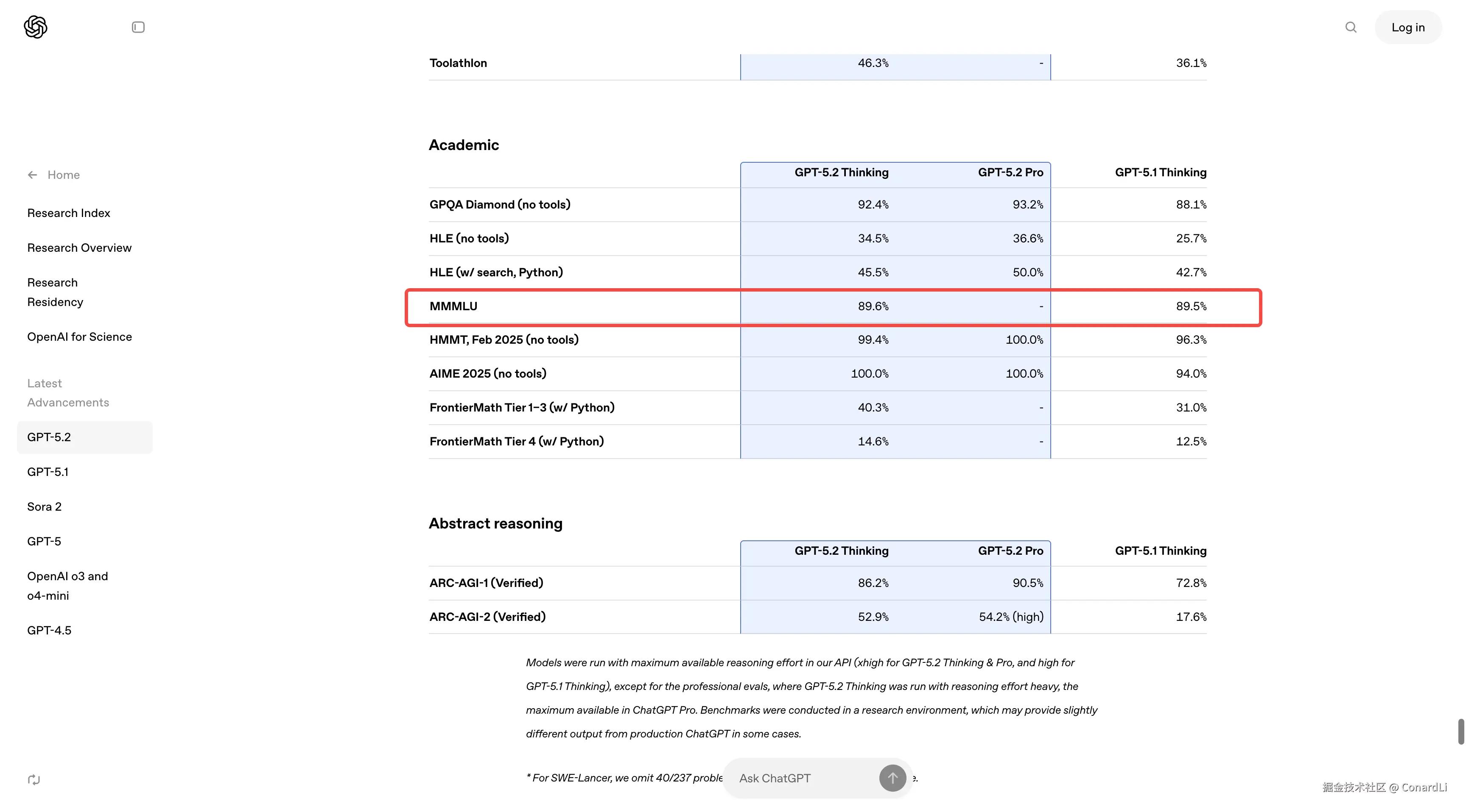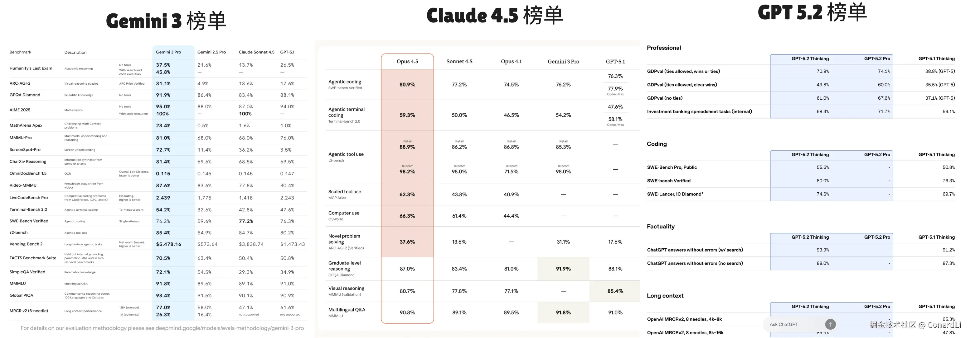 而在 GPT 5.2、Gemini 3.0、Claude 4.5 的发布公告中,我们都会看到一个 MMMLU 的基准: