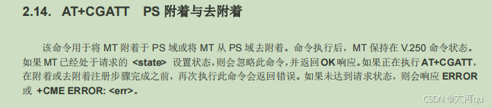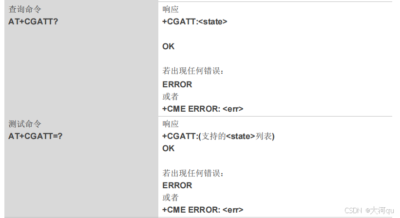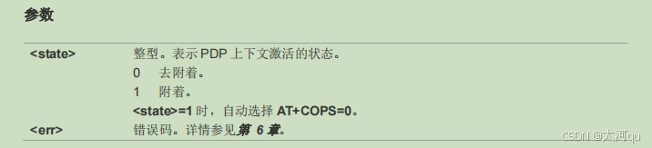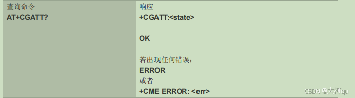 发送AT+CGATT? 模组返回+CGATT:1,该字段表示什么含义?